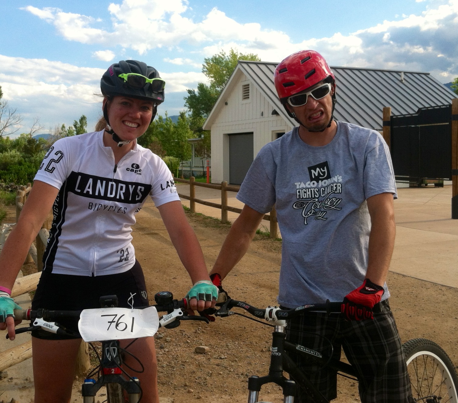 I had packed a good amount of food including one bar that was 400 calories but broken up into 4 chunks with each one being 100 calories each. A friend had given it to me to try and figured it was worth a shot because it was low in sugar. I took a bite of the first block and chewed on it for a little bit and then a little more and then spit it out. Gross. It was grainy and mushy and too much chocolate. I guess I didn’t hit my head that hard because I still don’t really like chocolate. Realizing that I probably wasn’t going to eat the rest and still had to climb up Columbine I dumped the other blocks on the side of the trail to lose the extra weight and mainly so it wouldn’t melt all over my jersey. I got by on the ride with about 500 calories, which isn’t exactly sufficient and realized I should start trying to eat more real food so I’m not feeling the need to brush my teeth after all the sugary chews and gels. I think nutrition is going to make or break Leadville for me so I’ve been focused a little more on what I’m eating when I’m riding. Peanut butter and bananas wrapped in a corn tortilla seem to be the forerunner right now.