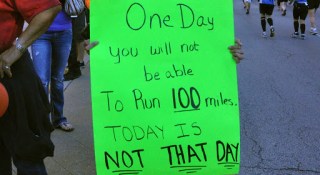 hole in it) to have at Mile 40 if I needed it. We had previously determined that they would be at the aid station for Mile 40 and stay there till I passed back through at 60. One of the guys Sully knows was going to be at the first one (Mile 27) and said if I needed something he’d run support for me there. I was pretty calm throughout the whole processes of getting ready. We all rode bikes down to the start and Sully and Wayne hung out on the side where I was at. We went over last minute checklist, food, water, clothing, what was going to be at each checkpoint and Wayne found an otter-pop which he said was worth the trip right there. Everything was in order and I felt confident with all my preparations. After running 24 miles a day on about 600 calories I. Was. Ready. (name that movie?!?). Sully asked if I was ready and then restated, “oh wait, you were born ready.” Which is what I tell him when we’re riding and asks if I’m ready to go.