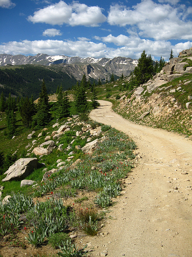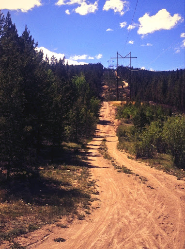 I took off with an open banana in my pocket and a new surge of energy. I need to keep drinking because I made a deal with Sully that if my camelbak was empty I could leave it with him on the climb up Columbine and pick it up on the way back down. The next section between mile 27 and 40 is probably my favorite, both ways. It’s not just up and down but more of a flowy, anfractuous trail and is the only part that contains singletrack. Right after