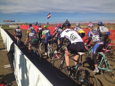 We took off the next morning with two matching bikes (yes we just became that couple) and enough gear between us to make you think we were going back to Fruita. It was a short drive to the venue, about 50 minutes which was just enough time to ask Sully all of my questions. “Who will be in my category? How do I get over the barriers? Will everyone else be running? How does the scoring system work? When do I move up to Cat 3? What do I do if I have a mechanical or a flat?” He being the patient guy that he is, answered each one and then told me to watch “Joey’s okay” and told me that it probably wouldn’t be that bad, no matter what. http://www.youtube.com/watch?v=bEGAIYKTZ9w