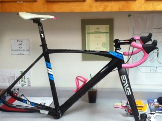 Sully finished building up my bike the day before the race and brought it by my work so I could try it out. Oh man, that looks soo good! I immediately jumped on it, nothing graceful, more of jumping onto my inner thigh and sliding my body into the right position and finding the pedals. “How does the reach feel?” “Uh, pretty aggressive. Maybe we (and by that I meant Sully) should flip the stem and try that”. He did and it felt better, which meant I could practice my cross mounts a little more. “See you got it, just go slow, everyone else will be be, you don’t look as awkward as you feel.” Well that was a relief, I was assuming most of the girls in my category (cat 4, it’s my first race so let’s not get ahead of ourselves) would know what they were doing as it was halfway through the season. I rode it around a bit more before relinquishing it so I could get back to work.
