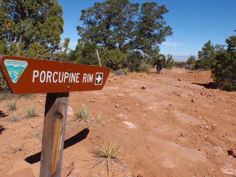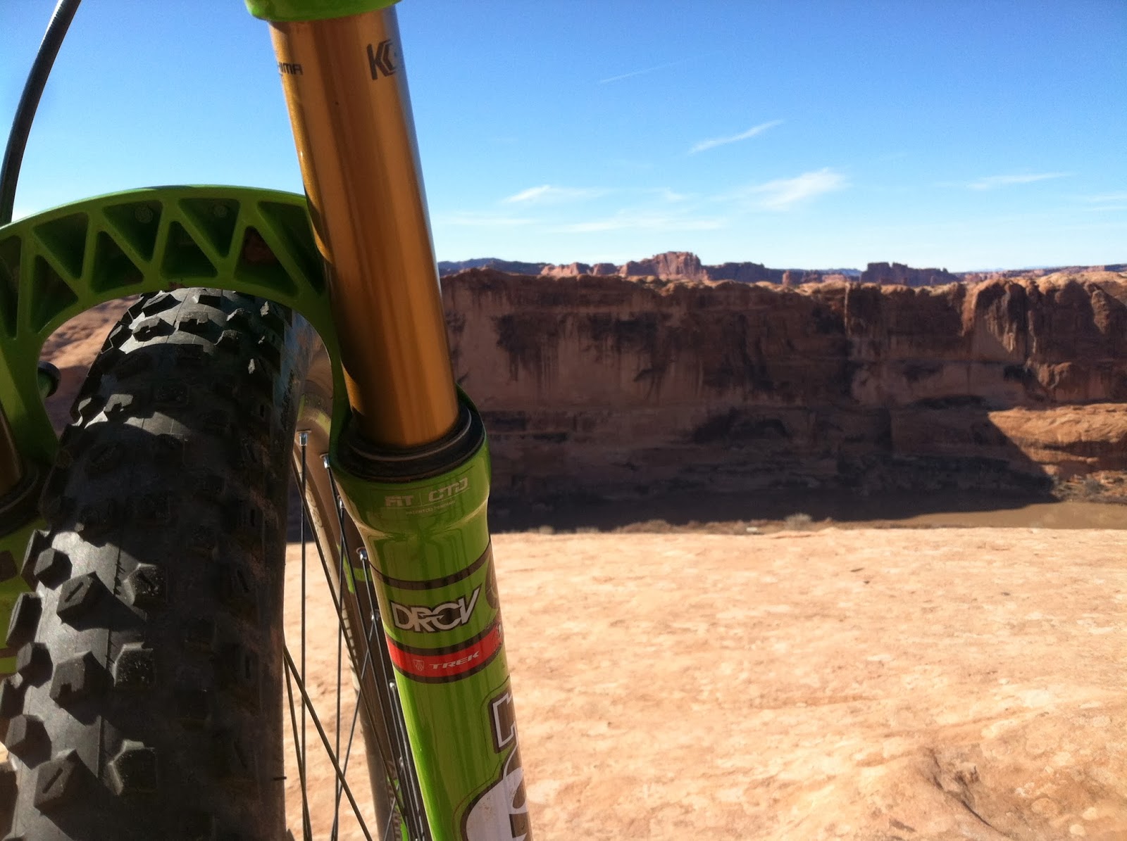 On Tuesday, Sully and I figured out we had the same days off that week, last minute schedule change on my part. I told him he could go skiing one day and then we could go riding together on the other day. He paused, “I could….or we could go to Moab!” The seed was planted. I told him I’d have to think about it but I knew we would end up going. We set out Wednesday night after work and made it to Fruita, we debated pushing on to Moab, but figured we’d be zombies the next day if we did. We were up and off for coffee before 9, which put us into Moab around 11, plenty of time to ride. We got a hold of a friend who had already been riding for a few days to see if he wanted to meet up. Ohhh this is perfect! We can shuttle Porcupine Rim and not have to ride our bikes up that atrocious road. Porcupine Rim is part of the Whole Enchilada ride, a 27 mile trail with 7,000 feet of descending landing on many top places to ride lists. Copious amounts of fun, especially if you don’t have to ride up it. It was really the only trail I wanted to ride. Partly because when I rode it with Wayne last year it was my 3rd time on a full suspension (one which I had rented) and wanted to see what my progress was (don’t worry Wayne, I’m sure I still wouldn’t have cleared as much as you did on your 29er hardtail…). Sully talked our friend into riding it with us so we could shuttle it.