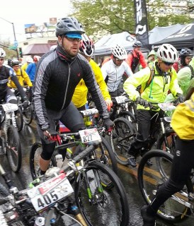 terrible. Okay, I can do this. It was about 4 miles on the road, which Sully passed me on. At first I thought it was some jerk trying to squeeze by me but when I heard his distinctive voice checking in on me, all my tension to run this uy off the road went away. I told him I was fine and he kept going. I was fine, but was starting to get a little cold, the rain hadn’t let up and we were beginning the climb up onto double track. Followed soon by single track. The single track had a lot of stop and go traffic, which meant slowing my pace and even sometimes getting off the bike to wait. My hands kept getting colder, I remembered once to drink something but that was about the only time I could muster it. I kept trudging along, higher into the climb and further from any chance of warmth. I saw a lot of people just stop and start hiking down the hill, but knew I would be in no condition to make it back on my own so kept going. My hands were getting the worst of it now, I was trying to muster all the courage I had to remain positive. This will be over soon, your hands will get better, keep moving your fingers, keep moving. I saw a group of people cheering on the side as I came by. “How…how far until the next aid station?” My voice cracked. “Six miles, do you need something?” I somberly said, “No.”