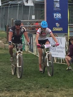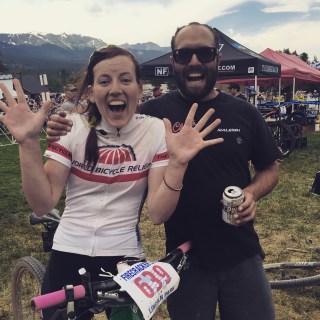 next 2 mile descent trying to find the chance to make my move. He took a wooden feature and I tried to sprint around on the trail but he cut me off. I sat on his wheel all the way through the finish and then he turned to me and said, “I’m really sorry darhling, I should have let you pass.” Maybe it was because of recent sexism I’ve been dealing with at work, or maybe it was because I hadn’t had coffee yet, but I unloaded on him, “Yah, you should have let me pass.” His response, “Well, I was just out there trying to give it my all.” “Oh, and I wasn’t?!?! I was and mine was faster than yours!! You should have let me pass because you knew I was girl and we aren’t in the same category, we aren’t racing against each other.” I was pretty livid, but Sully and Carly soon intercepted me and we were revealing in how much fun the course was and how we wouldn’t want to have do two laps. The guy who blocked me ended up doing a 40 minute slower lap time than me so joke is on him- because in the end he got beat by a girl–sucker!