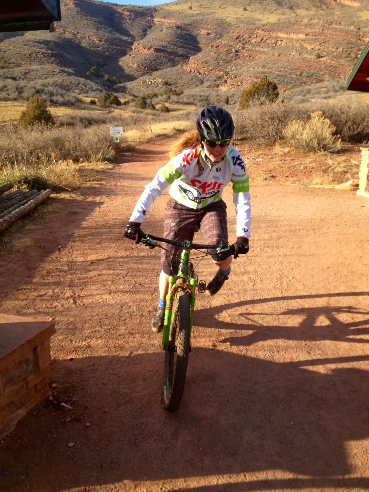 enemies with 33 miles left. The guy in front of me started to get antsy and finally a girl who was about 7 people behind me yelled, “come on boys, my grandmother can ride faster!” which made them all get all their panties in a bunch and started grumbling about how if you wanted to pass you should just say so grumble grumble grumble. The guy in front of me went for it which meant I need to go for it. I rang my bell to let them know I was coming in hot, threw up a prayer “please don’t run over a cactus and get a flat”, wouldn’t that be karma. I was able to put some distance between me and them and quickly the girl who yelled caught up to me, I thanked her for saying something and we chatted about boys taking everything so personally and kept each other company on the shortest steepest ascent on the course, which I only managed once to ride up on my training rides and that was with a lot of speed and quick transitions from hard gears to easy one locking out the fork and getting out the saddle at the right moment while keeping enough weight back to give the rear wheel traction. Race day I jumped off and walked up with her. We got to the top and started riding again. She took off a little in front of me and I settled into my pace. This section is so enjoyable both ways because it’s not just up and then down but more up, down, up flat, swoopey, down to fluidly going back up, and before you know you’re about to the aid station. I could see it in the horizon as I started to approach another girl (one of my habits is looking at the kind of bikes people have…and not judging them) I couldn’t help but notice this girl was on a singlespeed, I pulled up beside her, “Holy amazeballs (my vocabulary dissipates above 10,000 feet)! You’re on a singlespped! You’re the most badass person I’ve met and I don’t even know you!” She kind of laughed, “Yah it was the only way I could get in this damn race!” “Well props to you!” Dang, as I rode away I should have asked her if she was single because then she could date Wayne!