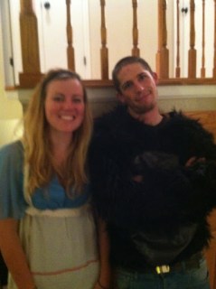 “We could dress up as a banana and a gorilla!!” They were definitely at the first Thanksgiving. “Yah! I’ll try to find a banana costume and if not we’ll do pilgrims or something boring.” And that’s how Molly and I decided to dress up for the Turkey Trot. Somehow my roommate was able to materialize a banana costume for me and Molly already had a gorilla costume (their costume box runs pretty deep). We both lasted about 50 yards into the run before I lost my top (to the wind, found it though) and Molly took off her mask so she could breath. A 5k is one of those distances that attracts all levels of fitness, from those high school cross country kids to the couch potatoes who are just walking it. Any time we passed a kid and their parent the parent would say to the kid, “You’re not going to let a gorilla and a banana pass you, are you?” Clearly because we’re dressed in costumes we don’t exude any level of fitness. It was a good run, neither of us wore watches and weren’t really concerned with our time. Which was good because I’m trying to soften my competitive spirit just until I get my mojo back so I don’t go off getting hurt again.