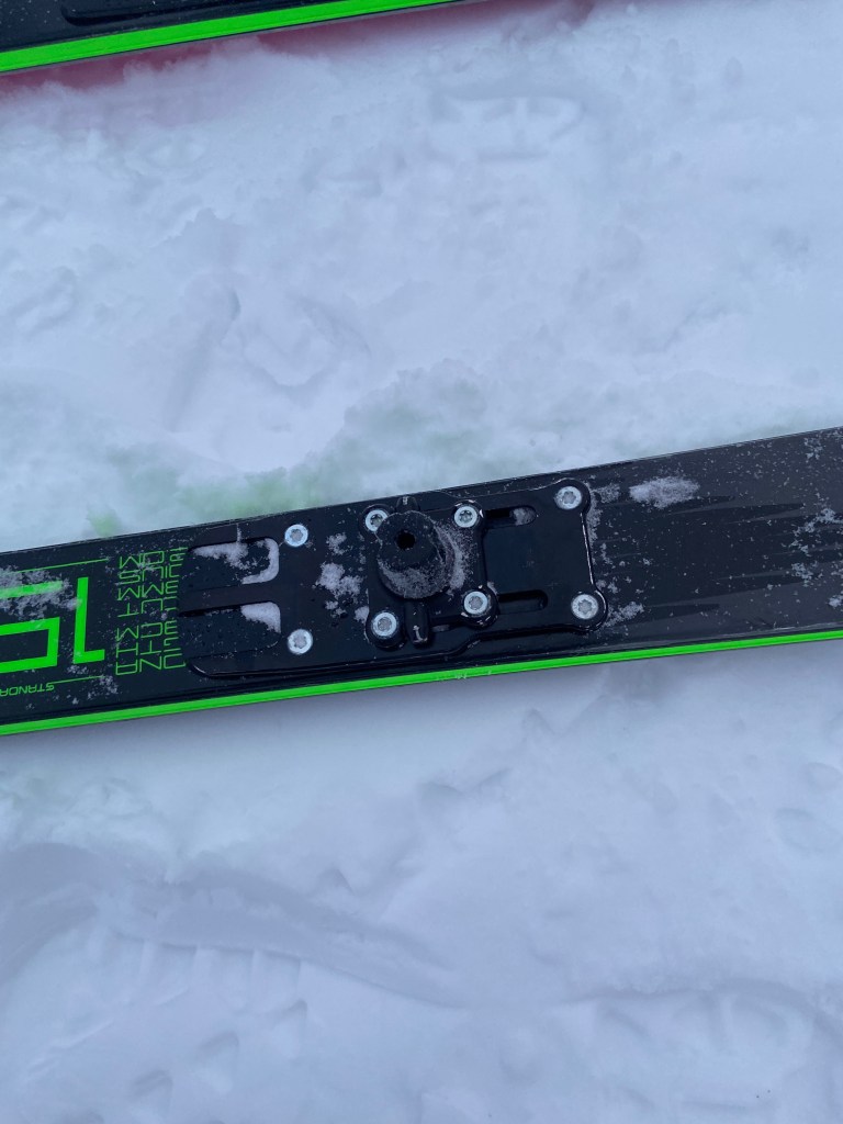 I got to the first descent, transitioned and set off, convinced that I’d be able to make up time on the descents. I think of it similarly to mountain biking where I feel confident taking the B line to make up time (I’m sure my friends who have seen me ski are like, “plz Kate don’t ever take the B line, your mountain bike skills are non-transferrable). I was going down the groomer and feeling pretty fresh, I saw a little jump and took it which fed into the next transition area. I unlocked my heels to put my skins back on but one of my heels was already released, oh maybe I didn’t actually step in properly. Then I looked, oh that’s not right and the heel attachment was gone but the tower was still there. I looked behind me as if it would be there. I thought about bailing, I mean I was only 3 miles into the race but realized I didn’t really need a heel piece.