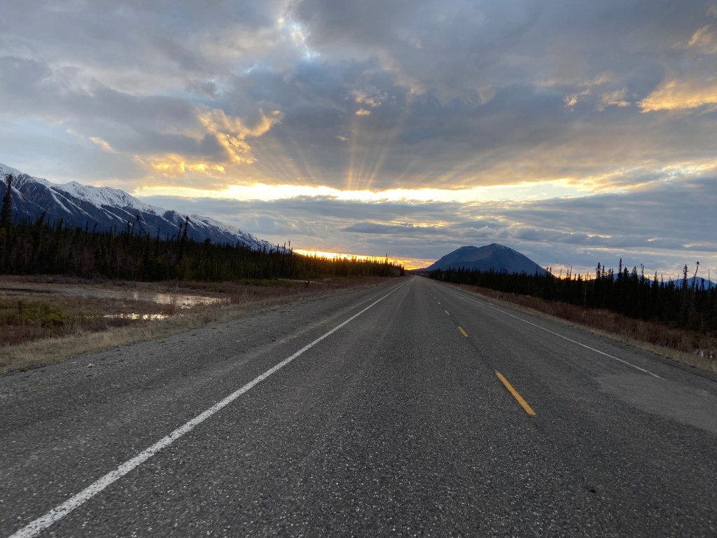 Okay, what if we stay in Haines Junction, actually get some sleep and then can do the last 150 miles tomorrow. We looked up a Hostel. I told Ana at the start of the trip that while I support her dirtbag lifestyle (I was young once) if needed to I would opt for a hotel and she could stay with me because what’s the point of having a good job if you can’t credit card bikepack sometimes. We rode over to the hostel and got a room with bunk beds. We pulled our bikes inside and put some food in the fridge. I baked some sweet potato fries that I had found frozen (the upgraded version of just letting them dethaw in your bag before eating). We were also able to shower which was a game changer as the grime of the past 4 days required some deep scrubbing and the occasional realization I’m scrubbing a bruise. I got into somewhat clean pajamas, put my legs up on the wall, and soon fell asleep. We woke up in the morning and packed up enough to ride to the bakery for when it opened. We ate breakfast and stayed there long enough for me to realize I forgot the sweet potato fries back at the hostel. After I returned I got another sandwich for later in the day and we took off to Haines.