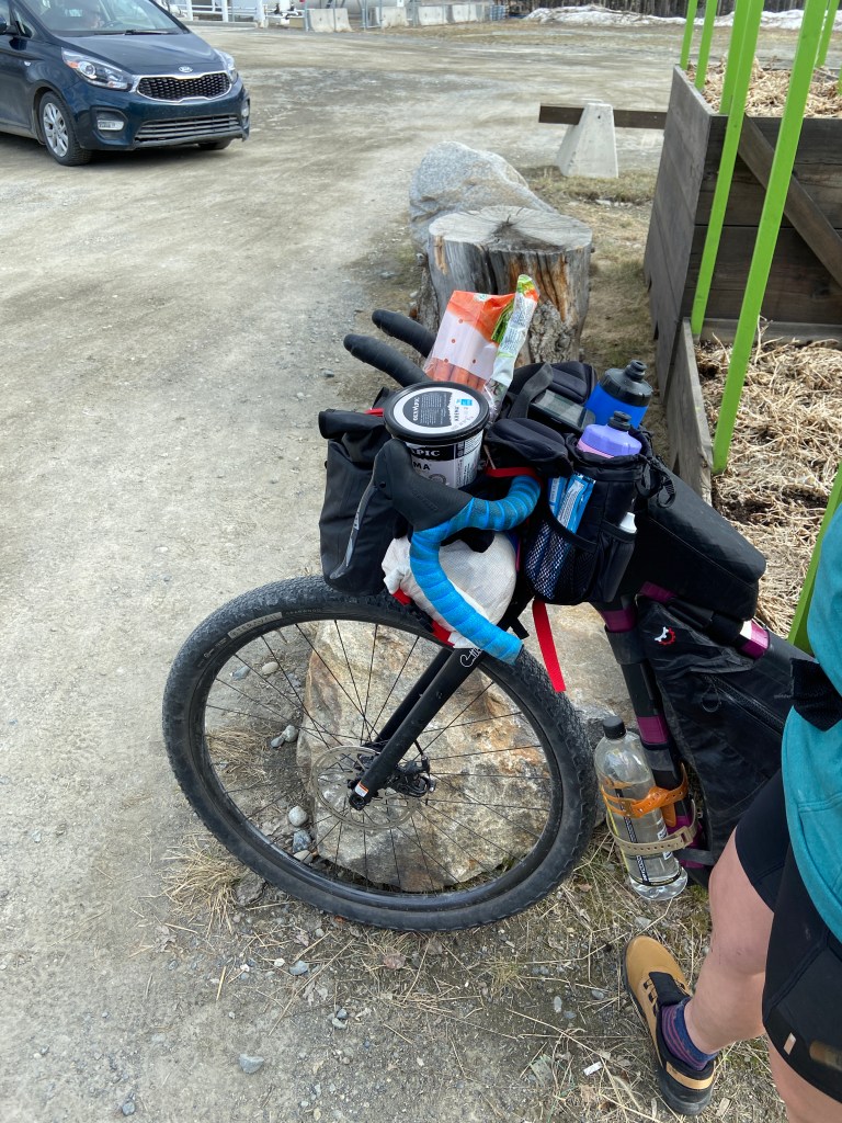 Grande, Ana, Holly, and I were all in for the White Mountains 100 which I was grateful to have others to help figure out logistics. We found a friend to stay with and Grande rented a u-haul van. Oh, that was easy now the part where I hadn’t done much (re: any) biking since October. I did a ride the week before the race with Grande and Lil’ snugs– reminding myself what it was like to pedal. I borrowed Dusty’s bike and boots for the race since I still haven’t bought a fat bike. Charlotte was able to come up for the weekend so we left on Friday afternoon, which meant I was able to be somewhat lenient with what I packed still not exactly knowing what I would be needing.
