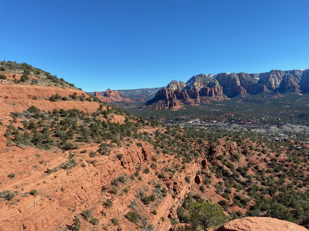 The next morning I taped it up and headed to a fairly easy trail for a loop to see how my knee felt. The trail started with a half mile descent to link up with the loop, I gingerly pushed off my left leg, altering my gate for my right leg to carry more of the load. How odd, my right leg has been the weakest and now it was picking up the slack of my left. I notice what caused a sharp pain, down step with leg fully extended and a heel strike. I wove around people and the rocks. The pain was intermittent giving me hope that I hadn’t done any real damage. Once the trail leveled I settled into a slower pace than normal and ran the loop around. Sully and I used to come down to Sedona to visit his parents, I remembered riding the trail with him but running it now I couldn’t believe this was one of the easier ones in the area. I made it through the loop and felt better towards the end with no actual residual pain. Definitely got lucky on that one.