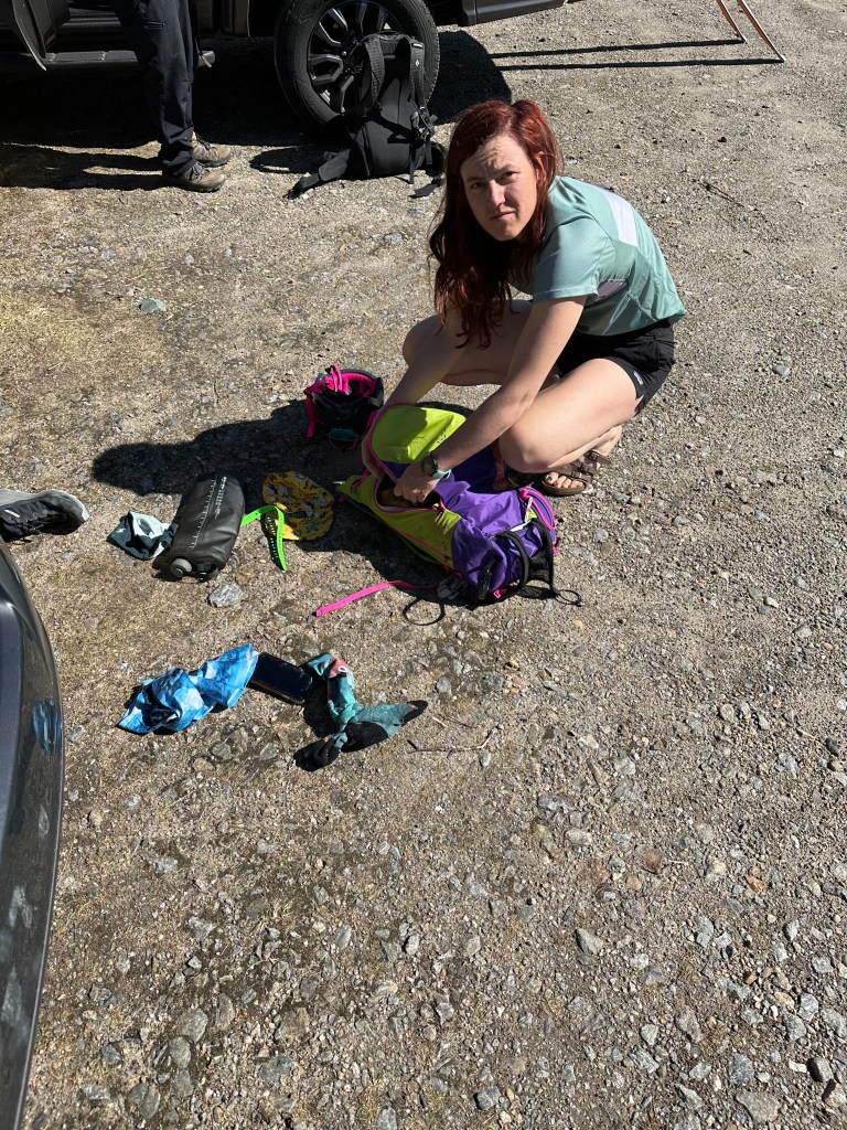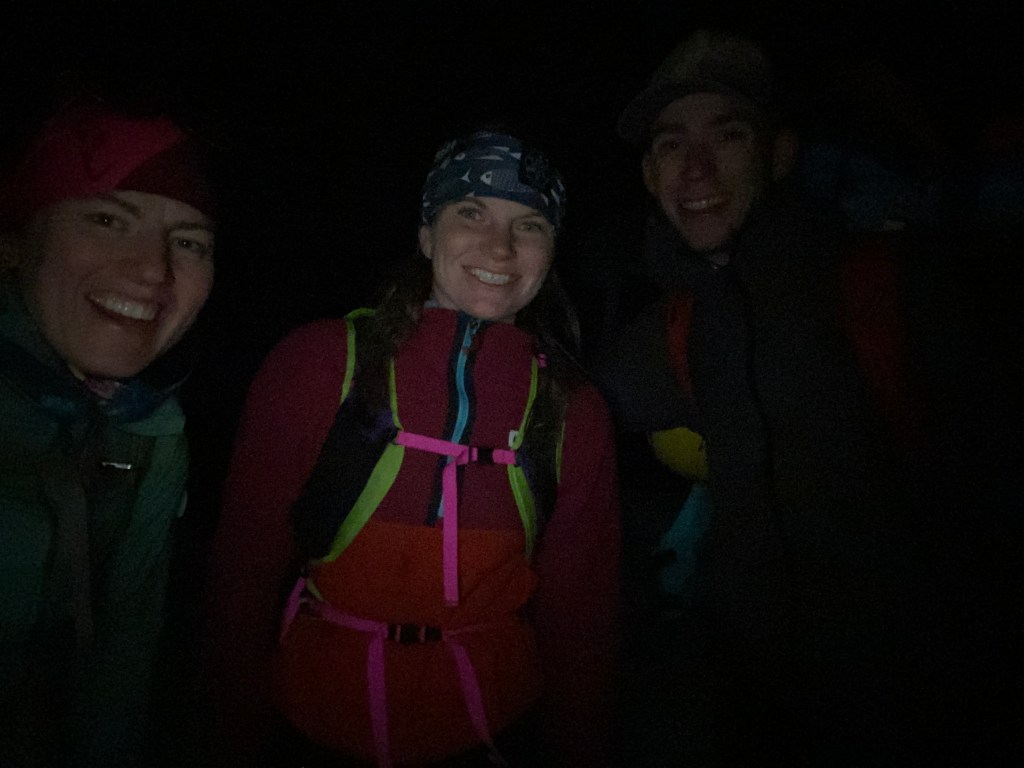 We started the descent and Grande took out her light, I waited to take mine out as with the summer sun coming back there would be few opportunities left to soak in the darkness. I followed her tracks and settled into the feeling, the flow of being at ease with the movements, the stillness that comes from knowing your own body and mechanics. This didn’t last long as I realized I would be real dumb if I crashed because I didn’t have a headlight and stopped to dig mine out. I caught back up to Grande after she waited for me and then she yielded the trail for the descent. I ran into a guy I knew from the area who was out running and who had done the bike and he was like, “oh we all thought you were on skis” and I was like, “absolutely not”. The tracker showed that I was on skis for the whole race and for not being a known skier everyone was terribly confused by this. The confusion cleared up when he saw that I was on a bike. We followed the trail back down into the parking lot that we had started from, crossing the line together. Ana met us having been done for a bit (she crushed it, winning the race, her second year in a row!) and had moved the U-Haul van closer for us to have easy access. I went into the warming station to grab some hot water and then immediately when back out when I hear more cheering and Holly crossing the finish line. Grande, Holly, and I all finished around 13 hours– much better than the 36 I had started to expect after the race meeting.