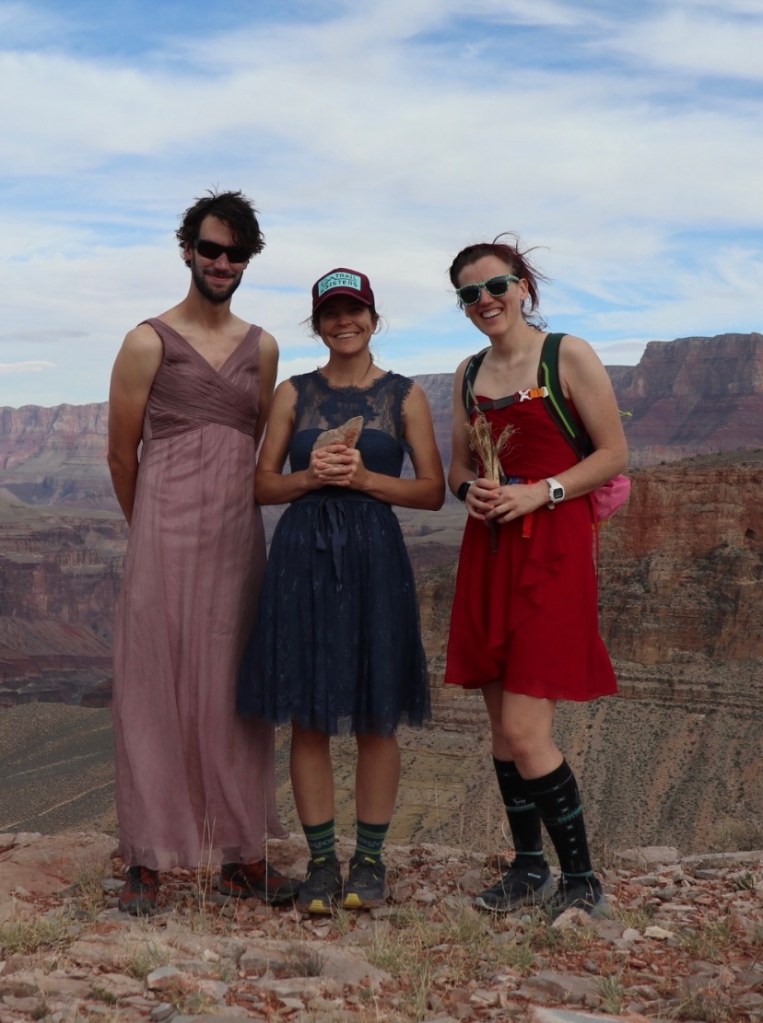 The last time I went to the Grand Canyon it was with Dave and Allison, and while I started that blog post many times I never finished it. We went down in a post-wedding celebration (of sorts) where I made them recreate multiple wedding photos at multiple locations and we all dawned bridesmaid dresses for one of the days.