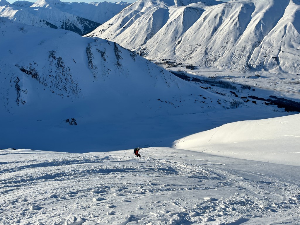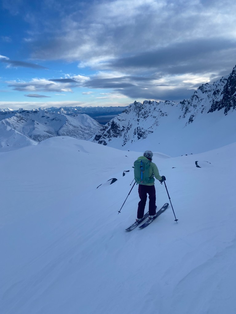 Despite me knowing that I was getting off the accelerated train from the past year I still signed up for some big races/events(tbd?). Which means that I have been skiing when I can and trying to build and maintain the fitness that I’ve acquired. On a more recent outing I went down to Turnigan with Charlotte and despite reading all the avy forecasts and looking at surface angles I couldn’t shake the feeling that something was amiss. On the skintrack up I had the feeling of what if I just tumble over the side, or the whole side of the mountain just detaches and that’s it. Every trip outside remains a meditation on mortality. Once on top I still couldn’t really shake this weird feeling. Misplaced anxiety is what I’ve come to call it. Charlotte skied down first and once she was at a spot out of the way I pushed off.